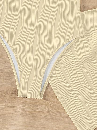 SKAYS Womens One Piece Swimsuit Texture Hollow Out Halter Neck Solid Color Bathing Suit with Cover-Up 2-Piece Sets Swimwear Apricot S